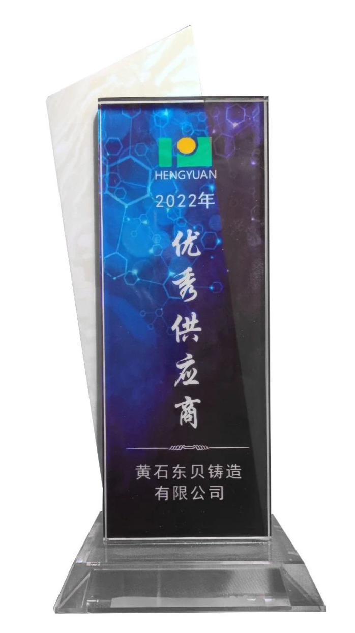 3月29日,黃石東貝鑄造有限公司在江蘇恒源機(jī)械制造有限公司舉辦的2023年“攜手迎挑戰(zhàn),合作贏未來”供應(yīng)商懇談會上,榮獲優(yōu)秀供應(yīng)商稱號,總經(jīng)理劉睦坤出席大會并領(lǐng)取獎項(xiàng)。